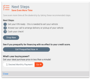 On the Payments and Pre-Qualification certificates, we’ve also added a “Next Steps” section, making it super simple for people to know what happens next. This area is lightly customizable with the ability to add in “Schedule a Test Drive” and “Get Pre-Qualified” calls-to-action to move customers further down the shopping journey.