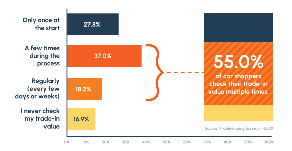 Q3 – During your vehicle shopping process, how often do you check or update your trade-in value?