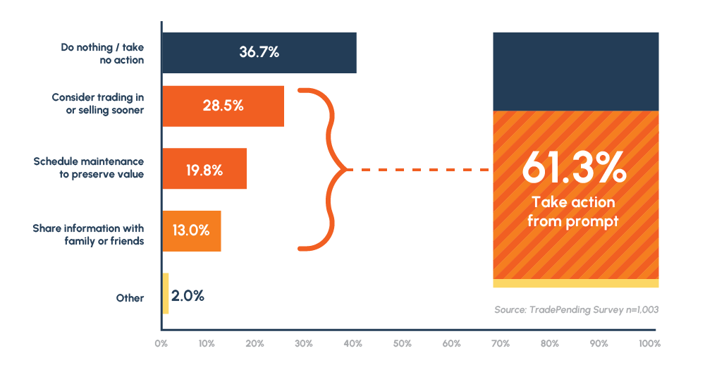 Nearly 75% of vehicle owners find getting regular updates on their vehicle’s value useful. Even with Carvana leading the industry on this marketing technique, there remains a large opportunity for dealers to provide meaningful value to their current and future customers to nurture long-term relationships by adapting this same approach.