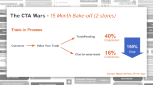 We’re not hating on chat tools, they’re great at what they do – establishing a personal connection. You need them for that. But if your goal is to convert website traffic in order to buy and sell more cars, think real hard before pushing every “value your trade” call to action to a chat. Doing that could cut your lead flow by half or more.